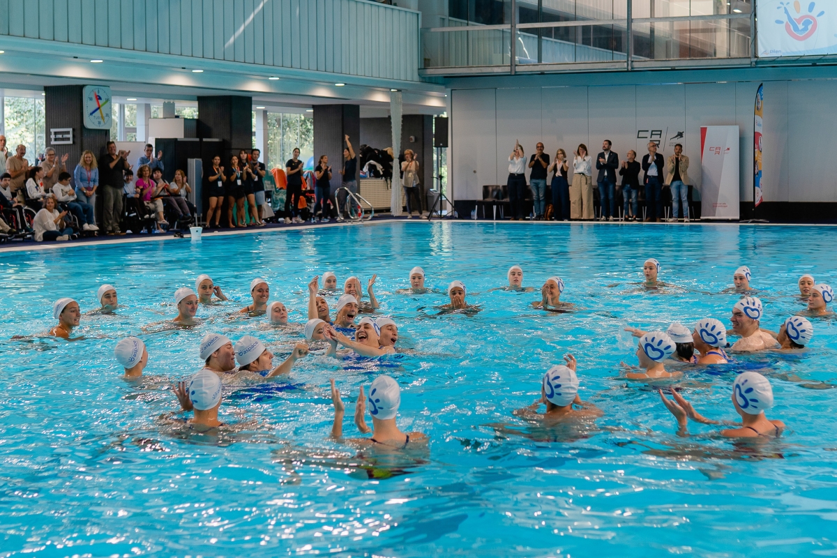 L’esdeveniment ha simbolitzat la connexió entre l’excel·lència esportiva i la força de la diversitat humana, convertint-se en un homenatge a la inclusió, la superació i el treball en equip. Davant representants d’institucions, famílies, usuaris i professionals de la Fundació, sis persones usuàries d’Aspace Catalunya han compartit coreografia amb les nedadores de la Selecció Nacional de Natació Artística i del Club Kallípolis, en una actuació plena de sensibilitat i inspiració.